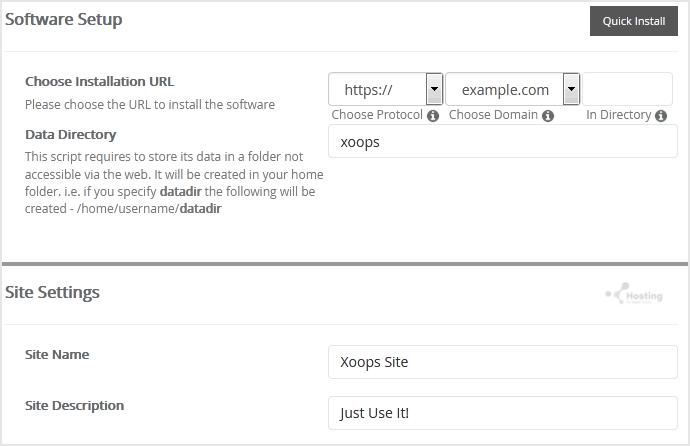 • Choose Installation URL: Choose the appropriate protocol/domain. Inside the "In Directory" field, should you want to install this in a directory, i.e., example.com/directory, enter the directory name. Otherwise, leave it blank to install in your main domain, i.e., example.com