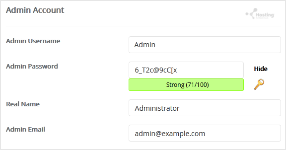 • Admin Username: Your new Xoops username (for security reason do not use the Administrator or the Admin username.)