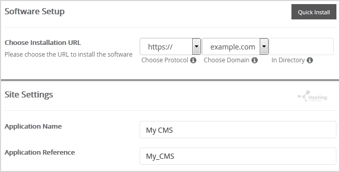 • Choose Installation URL: Choose the appropriate protocol/domain. Inside the "In Directory" field, should you want to install this in a directory, i.e., example.com/directory, enter the directory name. Otherwise, leave it blank to install in your main domain, i.e., example.com
