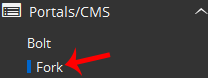 4. On the left side of your screen, you should locate the Portal/CMS category. Click on it and then click on the Fork link that will appear.